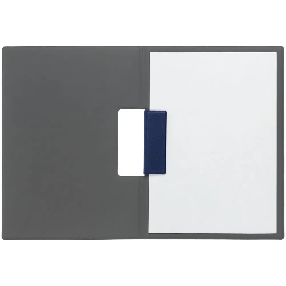 Папку можно использовать в стандартном вертикальном формате или перегнуть обложку и поставить в качестве таблички горизонтально. Магнитный клип удерживает до 10 листов.