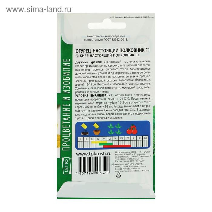 Семена Огурец Настоящий полковник F1, ранний, партенокарпический, 8 шт