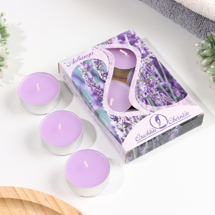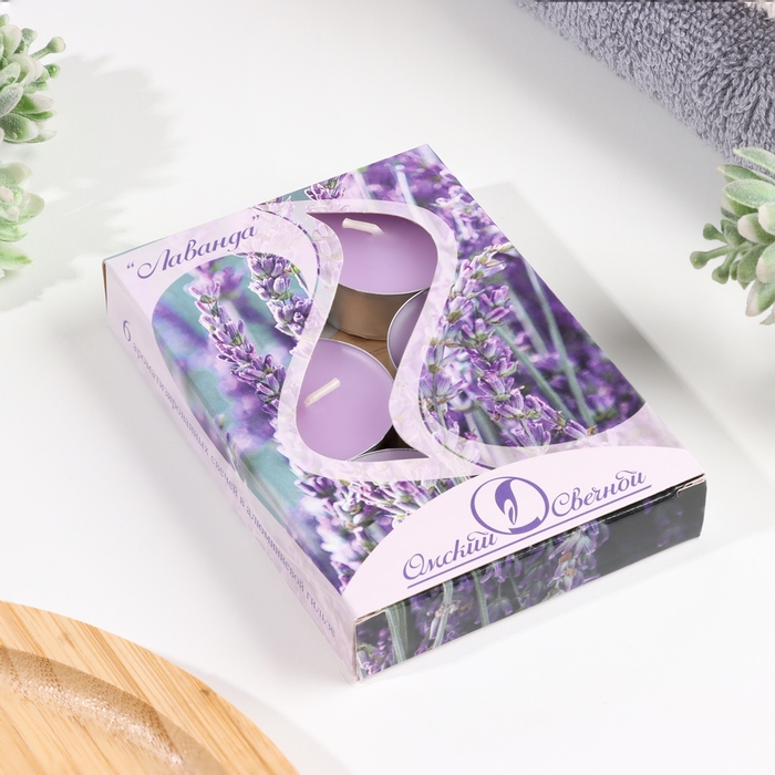 Набор чайных свечей ароматических "Лаванда", 3,8х1,6 см, 3,5 ч, 12 г, 6 штук