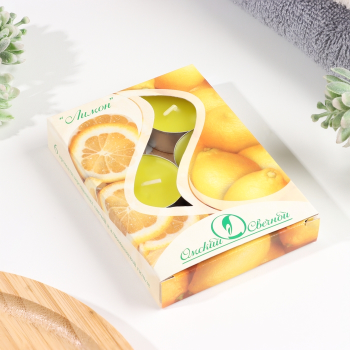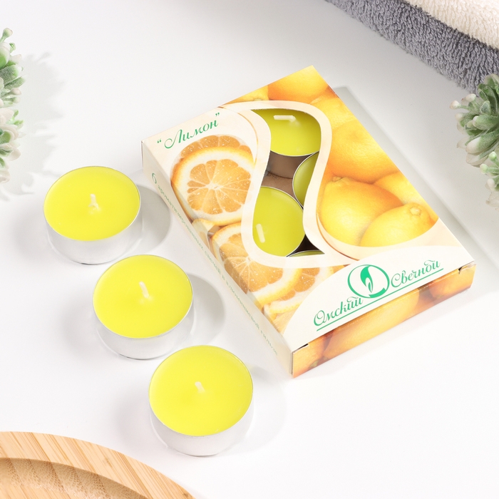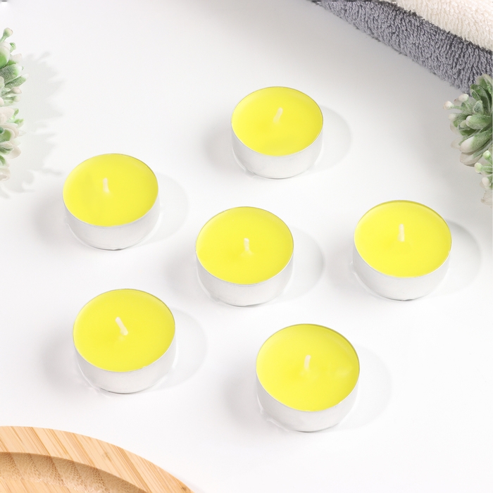 Набор чайных свечей ароматических "Лимон", 3,8х1,6 см, 3,5 ч, 12 г, 6 штук