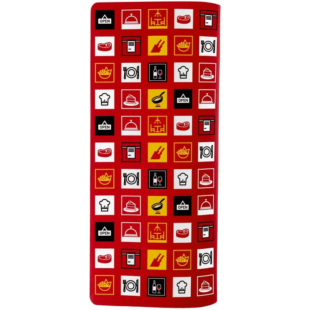 В каждой части общего рисунка изображены главные символы кафе и ресторанов.Органайзер имеет 5 отделений: для билетов, паспорта, визиток или кредитных карт.