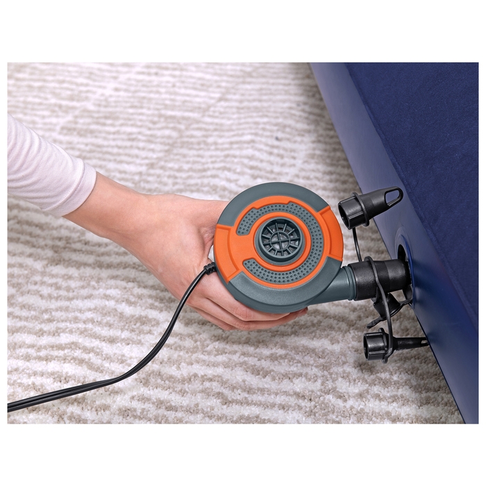 Когда нужно разместить гостей, но в доме нет лишнего спального места, вас выручит надувной матрас. Прочные перегородки внутри обеспечивают необходимую упругость. С велюрового покрытия, приятного на ощупь, не скатывается постельное бельё. Изделие имеет сдержанный дизайн, классическая расцветка позволяет ему хорошо вписываться в любой интерьер. Данную модель можно назвать настоящей надувной кроватью, так как она не уступает в комфорте обычным пружинным матрасам. Подходит также для использования на открытом воздухе.