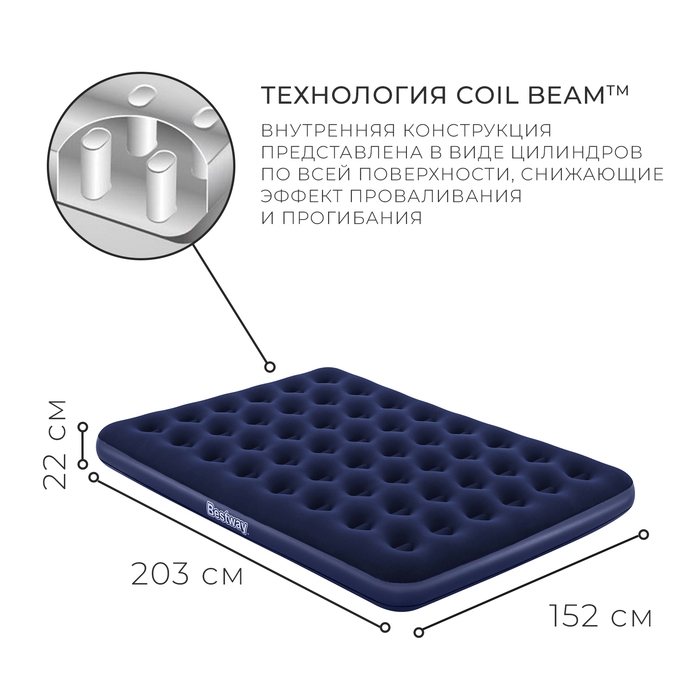 Матрас надувной Pavillo, 203 x 152 x 28 см, с встроенным ножным насосом, 67226 Bestway