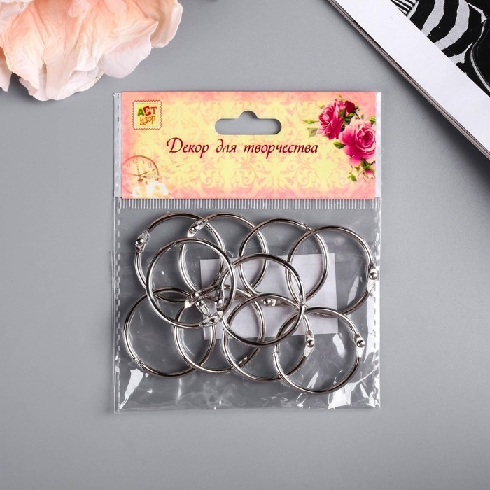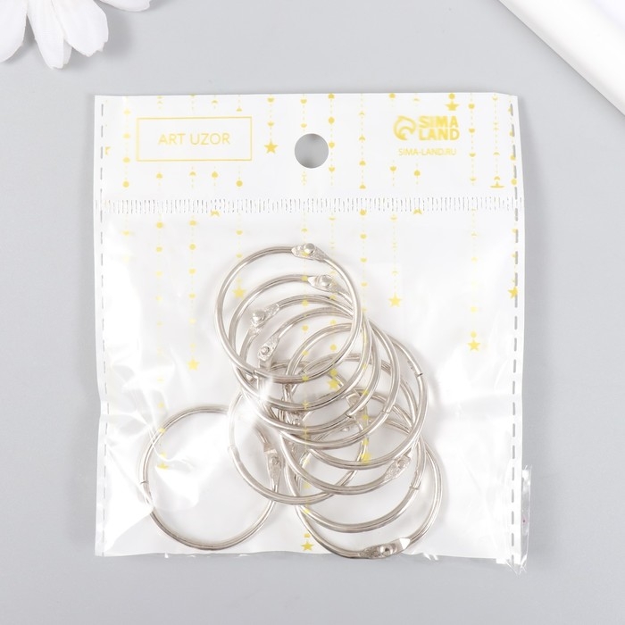Кольца для творчества для фотоальбомов "Серебро" внутр. d= 3 см внешн. d=3,4 см набор 10 шт