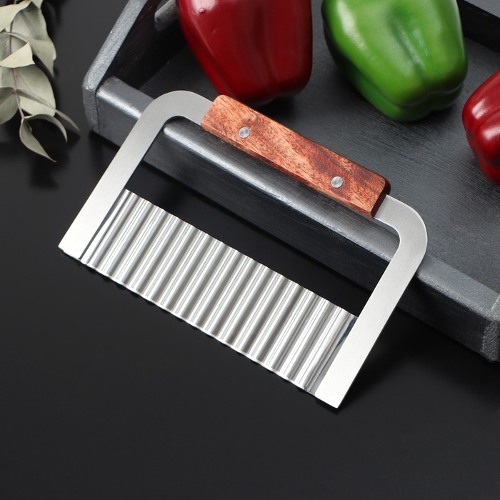 Ножи для декоративной нарезки овощей и фруктов сегодня пользуются популярностью. Изделие имеет характерное лезвие с выпуклыми зубцами по всему прямому полотну. При нарезании продуктов он придаёт поверхности ломтиков красивую волнистую форму.