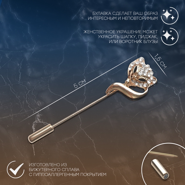 Данная булавка – настоящая находка для модниц, предпочитающих нетривиальные аксессуары. Брошь-булавка станет не только оригинальным дополнением вашего наряда, но и позволит без труда приколоть при необходимости палантин или шейный платок. Используйте её в качестве украшения шляпки, рубашки или галстука. Булавка «Лиса», 5 см, цвет белый в золоте внесёт особую нотку изящности в ваш образ.