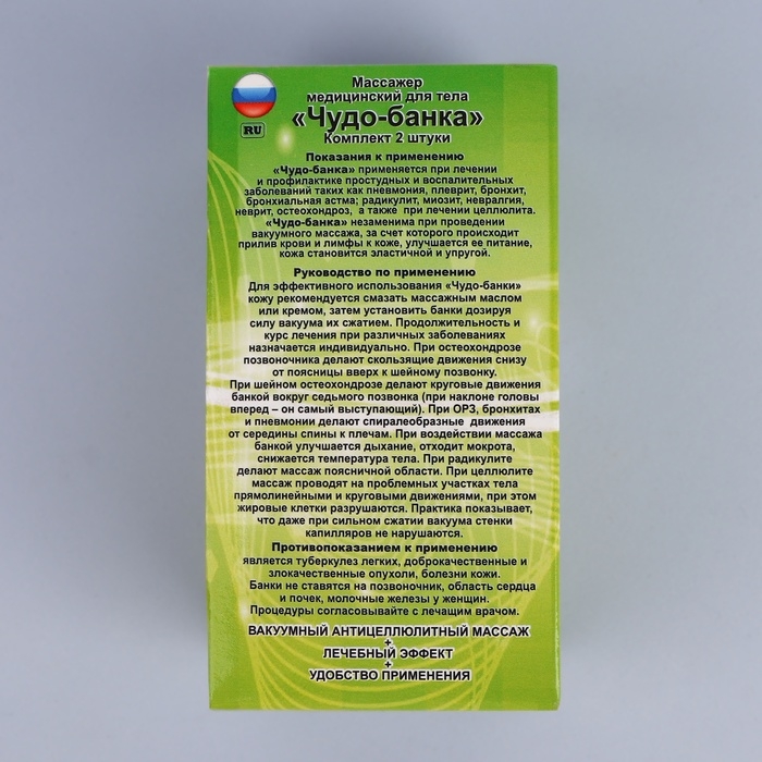 Для эффективного использования «Чудо-банки» кожу рекомендуется смазать массажным маслом или кремом, затем установить банки, дозируя силу вакуума их сжатием. Продолжительность и курс лечения при различных заболеваниях назначается индивидуально.