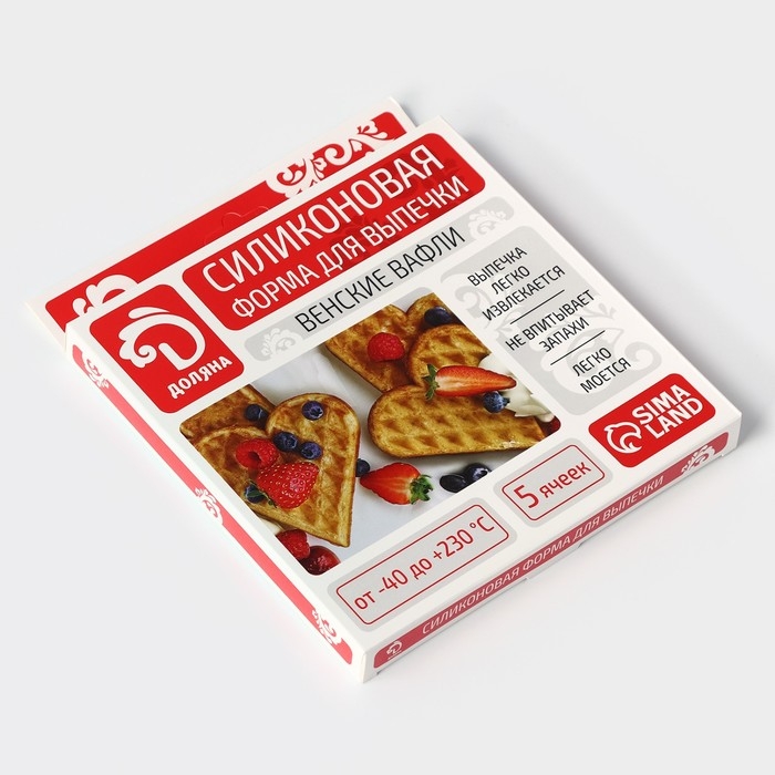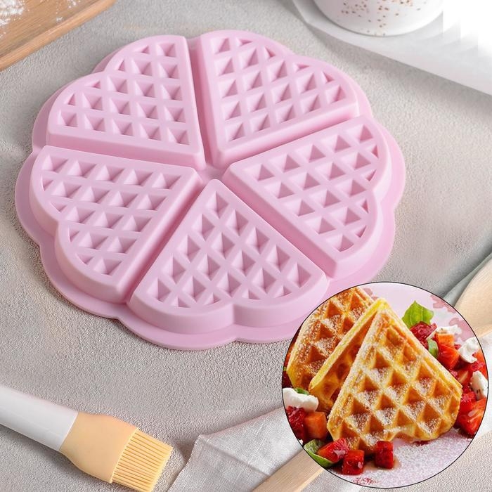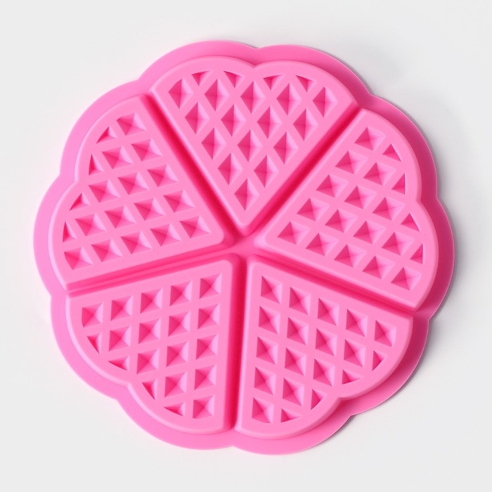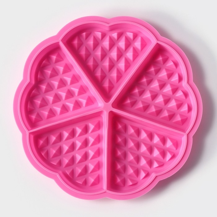 Форма для выпечки Доляна «Вафля. Сердце», силикон, d=18 см, 5 ячеек, цвет МИКС