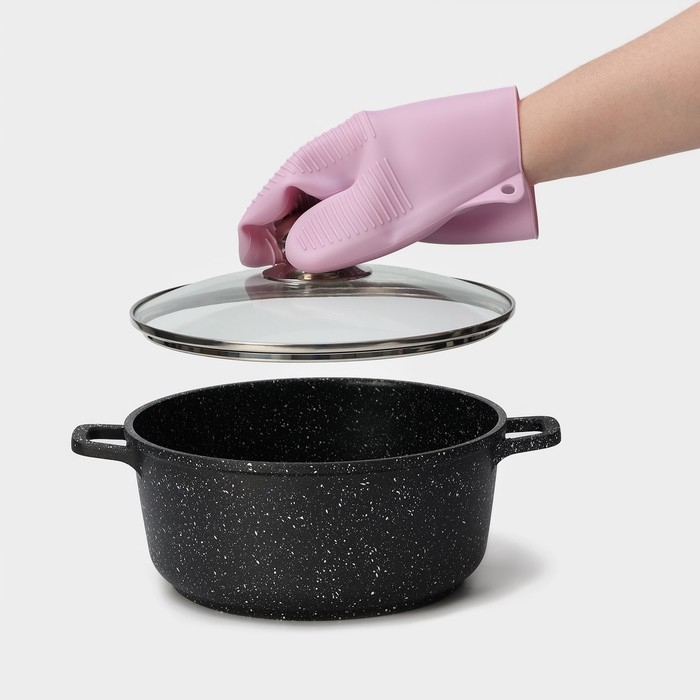 Рукавица для горячего Доляна «Ребрис», силикон, 22×17 см, цвет розовый