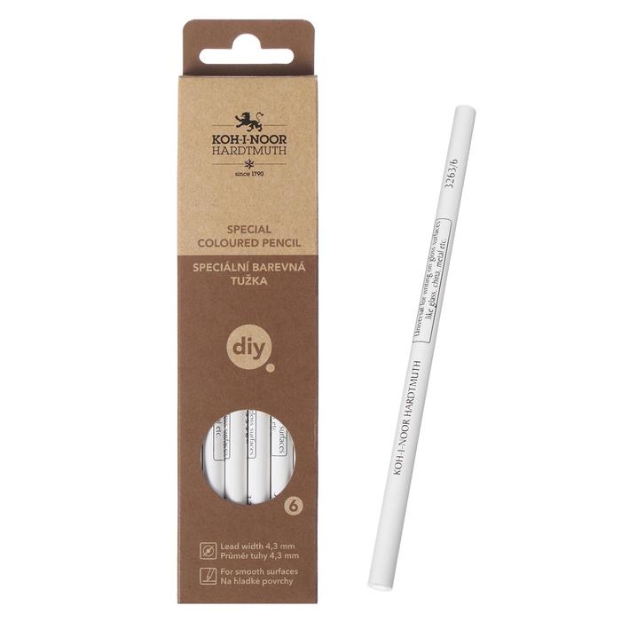Карандаш незаточенный 4.3 мм, Koh-I-Noor 3263/6, по стеклу, металлу, пластику, белый, L=175 мм