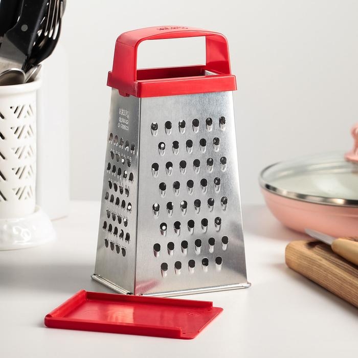 Тёрка «Универсал», 4 грани, с крышкой-дозатором и пластиковой ручкой, 11×8,5×22 см, цвет МИКС