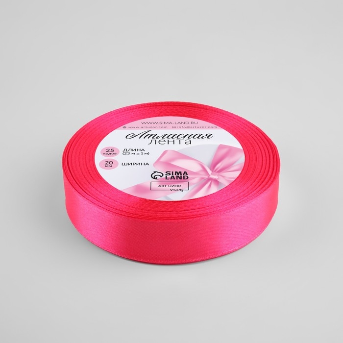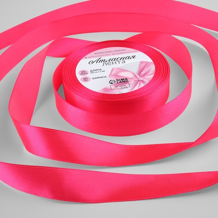 Лента атласная, 20 мм × 23 ± 1 м, цвет неоновый розовый №14