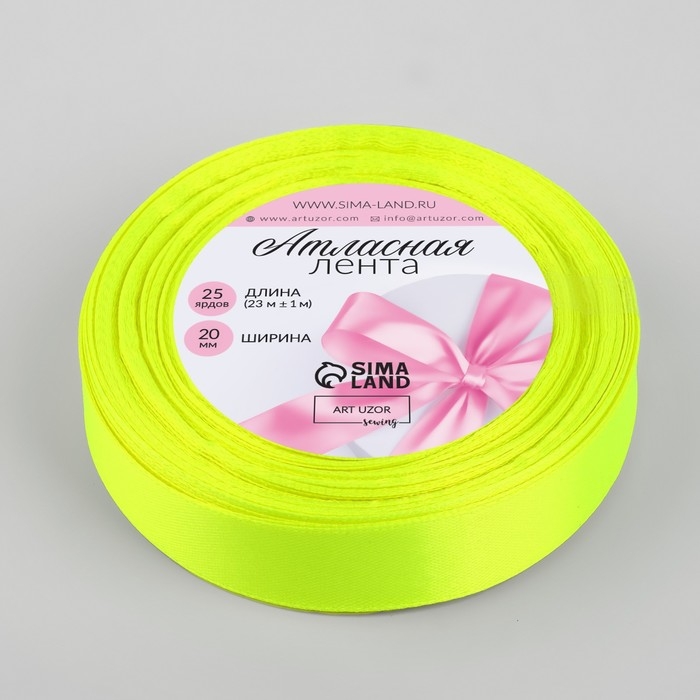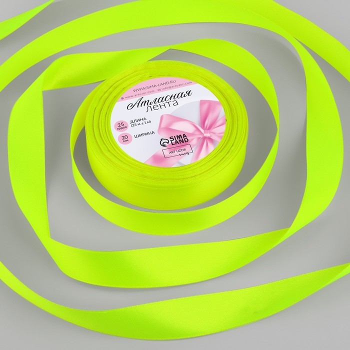 Лента атласная, 20 мм × 23 ± 1 м, цвет неоновый салатовый №58