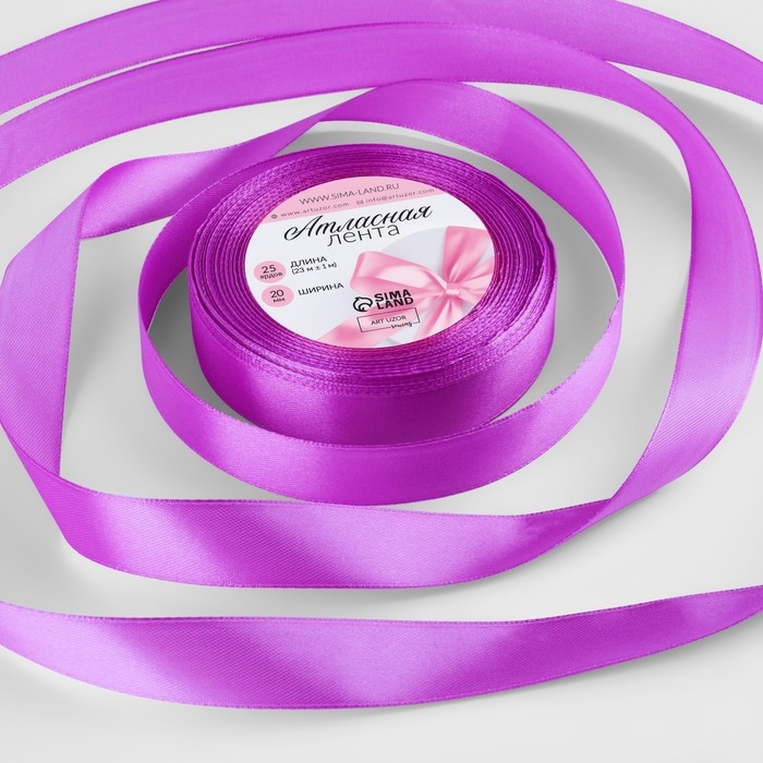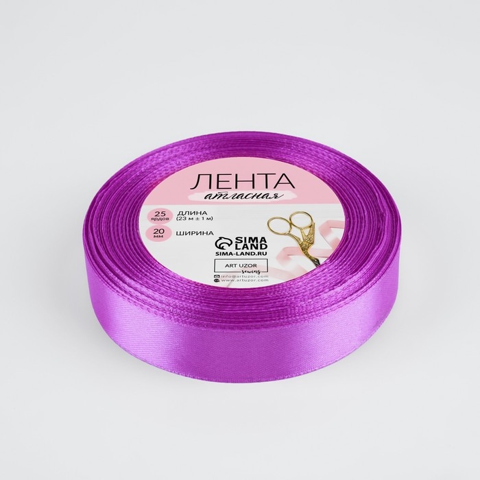 Лента атласная, 20 мм × 23 ± 1 м, цвет фиалковый №255