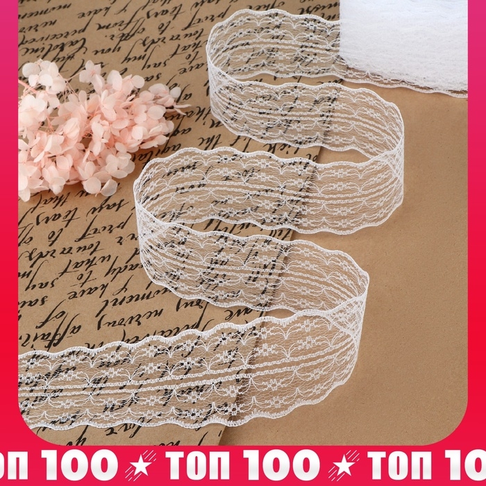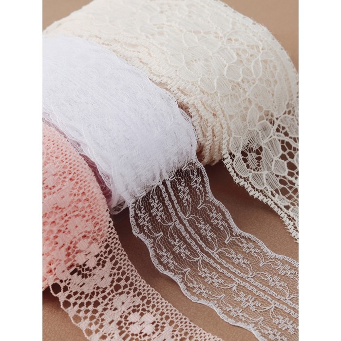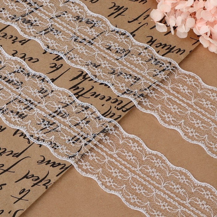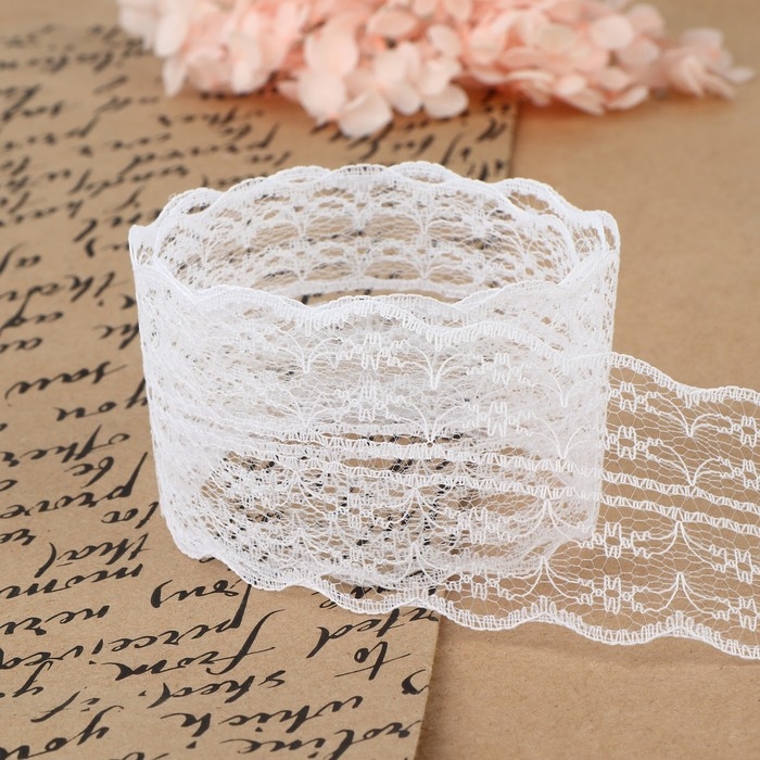 Кружево капроновое, 45 мм × 10 ± 1 м, цвет белый