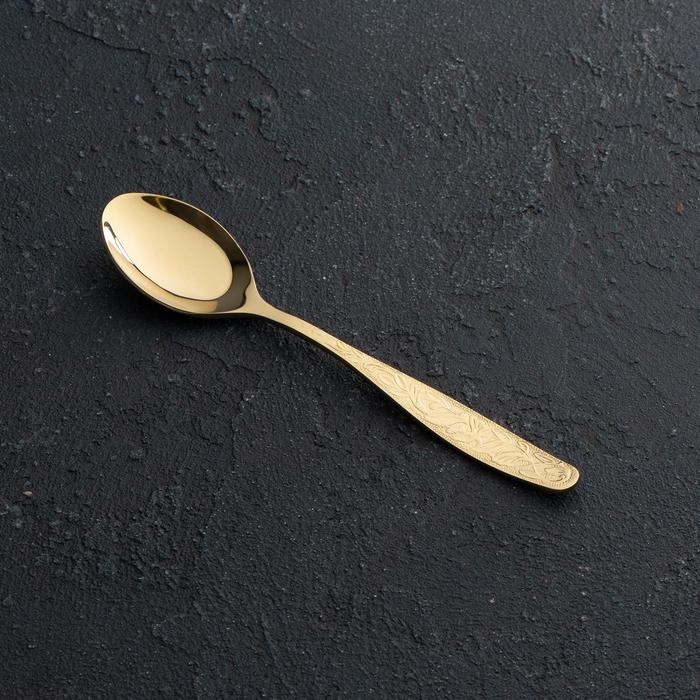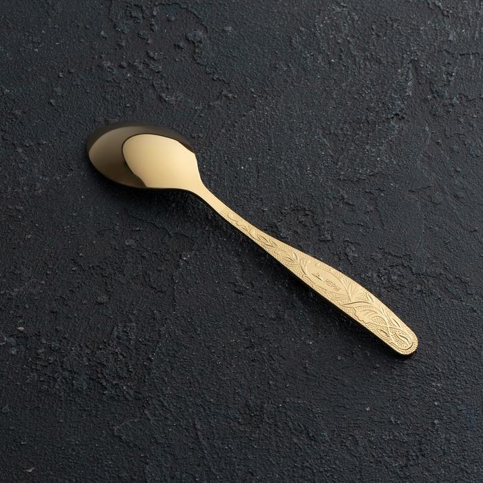 Ложка чайная «Уралочка», длина 14 см, толщина 2 мм, с полным декоративным покрытием, цвет золотой