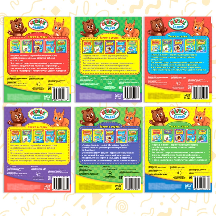 Серия обучающих книг «Первые знания» — это комплексная система занятий с ребёнком. Она делится на три возрастных периода: от рождения до 1 года, от 1 года до 2 лет, от 2 до 3 лет.