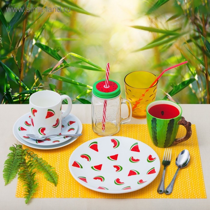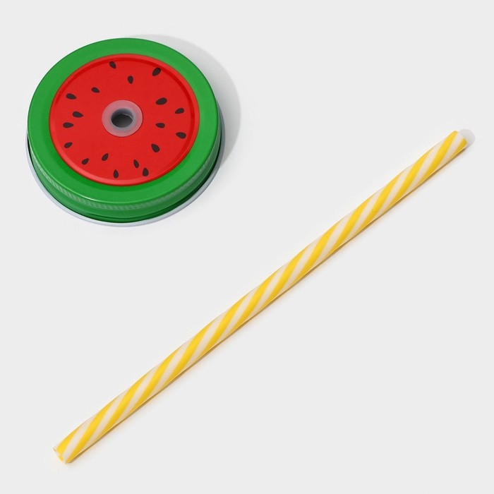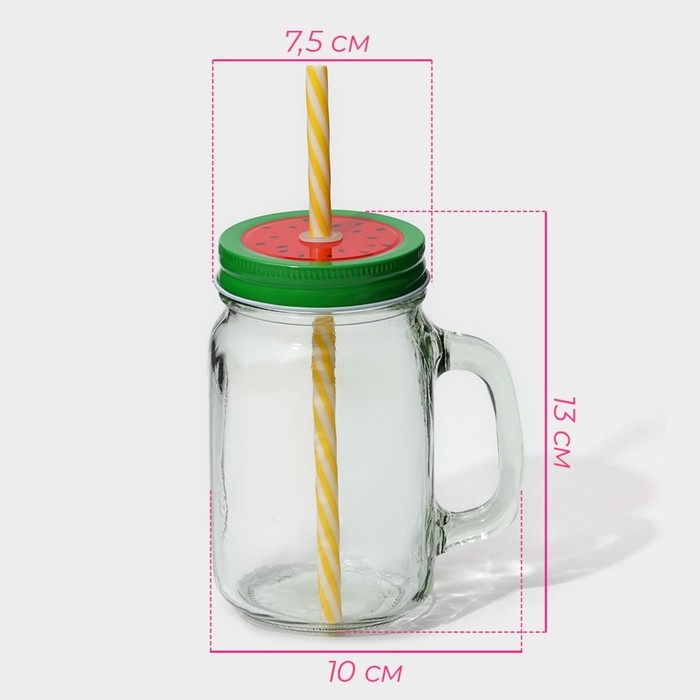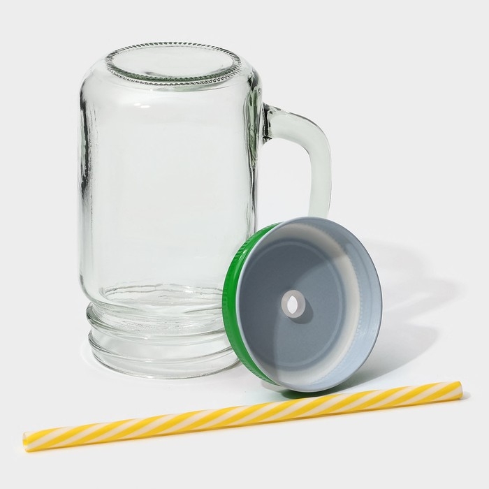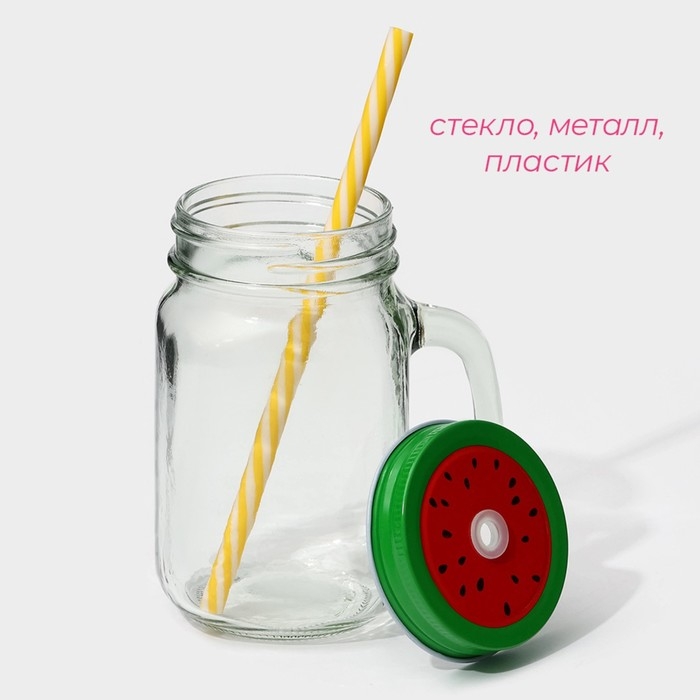 Набор кружек стеклянных Доляна «Яркий лимонад», 2 предмета: 2 кружки с крышками и трубочками 450 мл