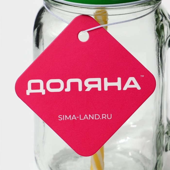 Кружка стеклянная с крышкой и трубочкой Доляна «Ананас», 500 мл, 11×8,5×13 см, цвет МИКС