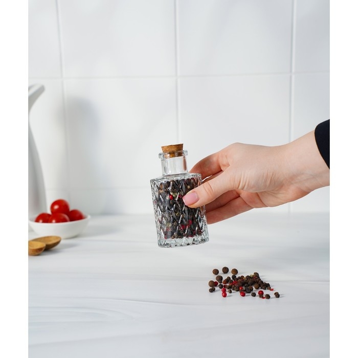 Баночка стеклянная для специй с пробковой крышкой Доляна «Парфе. Ажур», 100 мл, 10×5 см