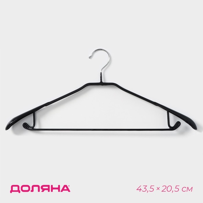 Плечики - вешалка для одежды Доляна, 43,5×20,5 см, широкие плечики, антискользящее покрытие, цвет чёрный
