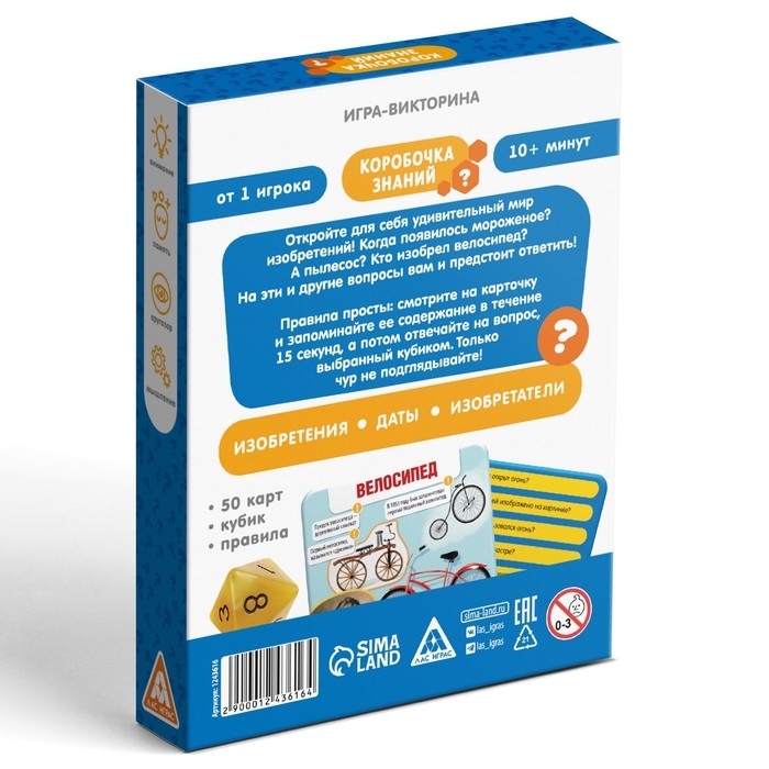 Настольная игра-викторина «Коробочка знаний. Изобретения человечества», 50 карт, кубик, 7+
