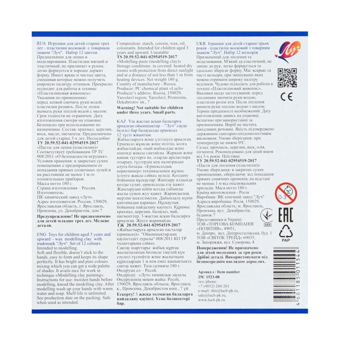 Пластилин восковой "Фантазия"в яркой подарочной упаковке предназначен для широкого круга покупателей самого разного возраста. Пластилин данной линейки, благодаря специально разработанной рецептуре, отличается от классического пластилина мягкостью и эластичностью, очень красивой и богатой палитрой цветов. Перед началом лепки не требует предварительного разминания, при этом сохраняет все свойства классического пластилина. Идеально держит форму, не липнет к рукам и не пачкается. Имеет чистые, красивые цвета, на которых останавливается детский взгляд. Можно комбинировать с классическим пластилином. Пластилином можно не только лепить, но и рисовать по бумаге и картону. Два вида дизайна.