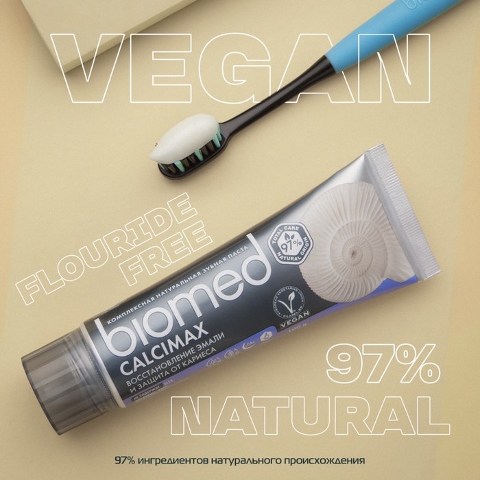 Укрепляющая натуральная зубная паста Biomed Calcimax реминерализирует эмаль и снижает ее чувствительность. На 97% состоит из компонентов природного происхождения.