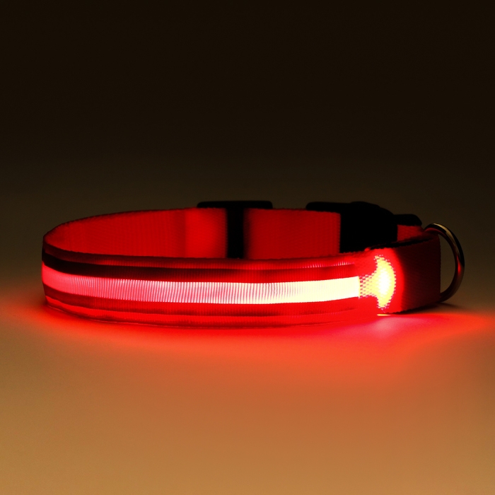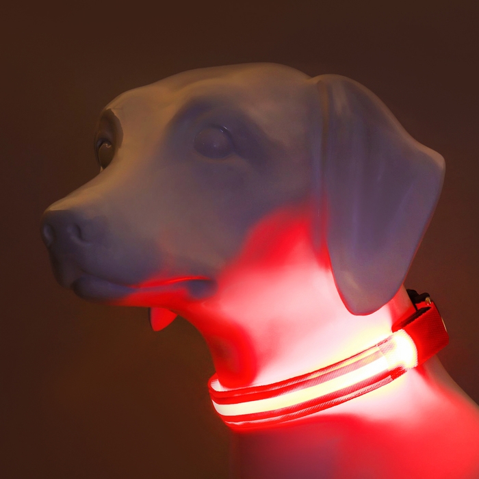 Ошейник с подсветкой "Двойная полоса", 3 режима свечения, красный