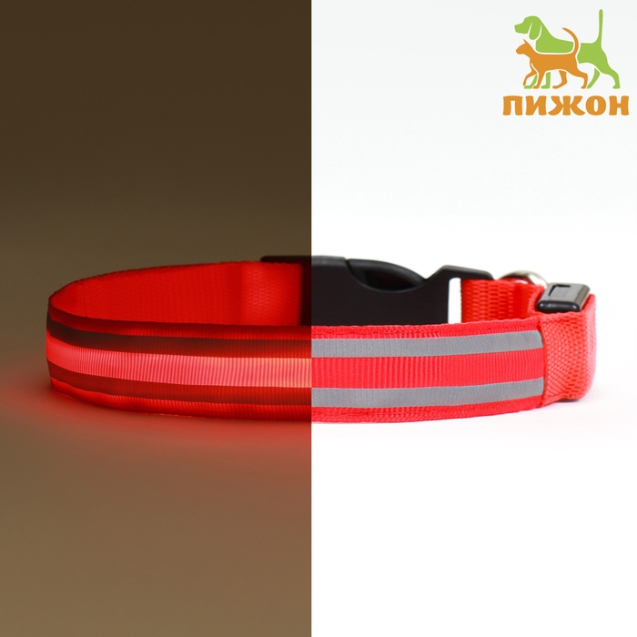 Ошейник с подсветкой "Двойная полоса", 3 режима свечения, красный