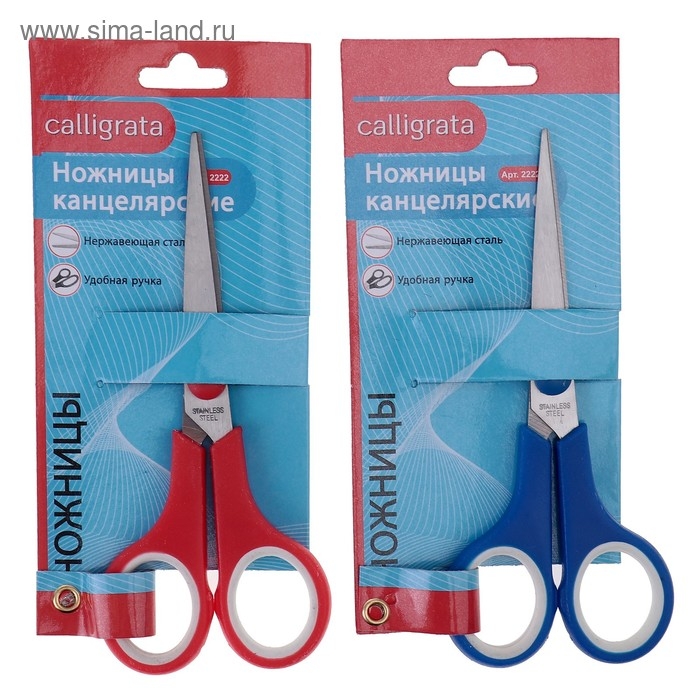 Ножницы канцелярские 14 см Calligrata, пластиковая ручка, резиновые вставки, микс