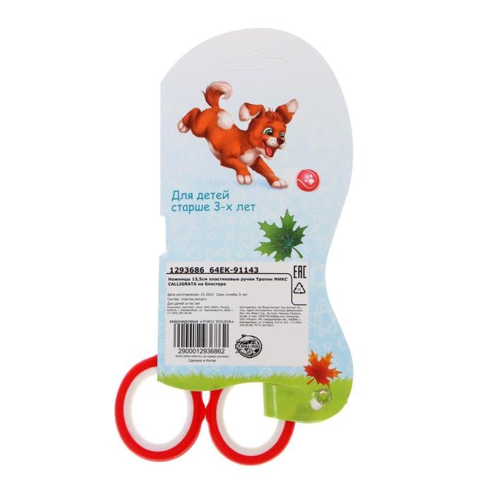 Ножницы канцелярские "Тропик", 13,5 см, пластиковые ручки, блистер, корпус МИКС