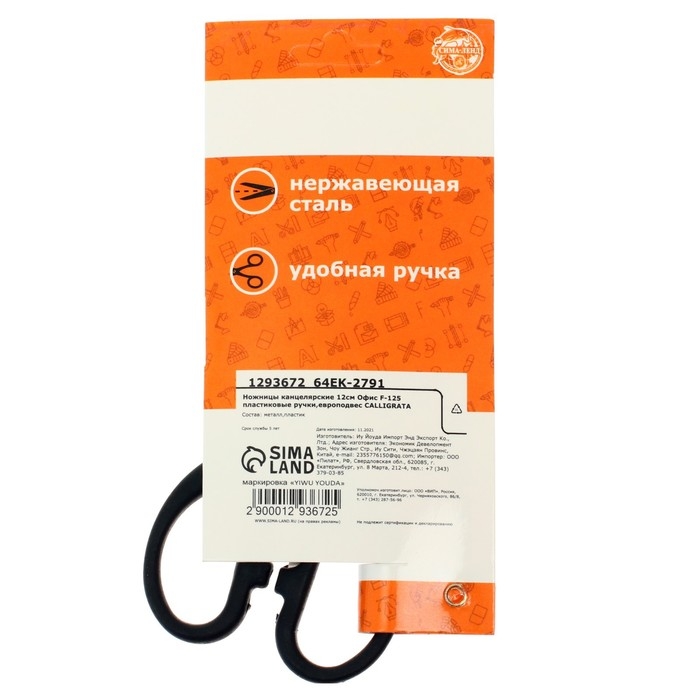 Ножницы канцелярские, 12 см, «Офис», пластиковые ручки, европодвес