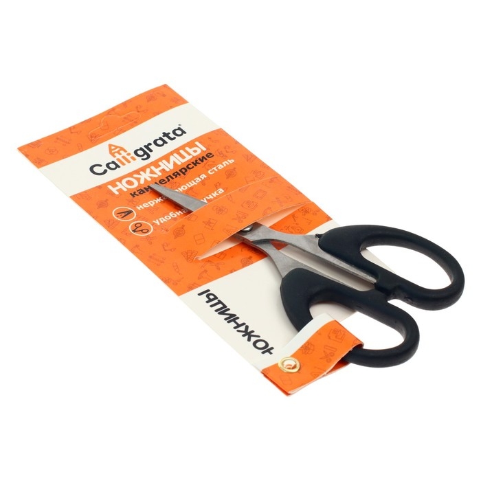 Ножницы канцелярские, 21 см, "Офис", ручки пластиковые, блистер, европодвес, чёрные