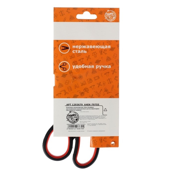 Ножницы "Комфорт" 18 см, эргономичные пластиковые ручки, блистер, европодвес