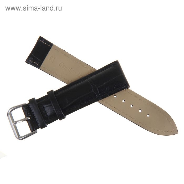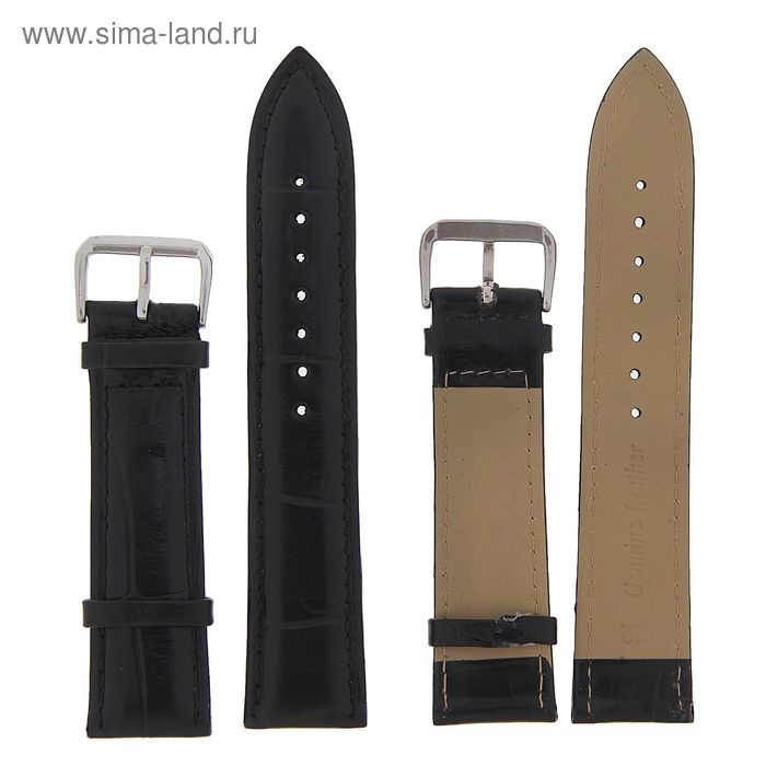 Ремешок для часов, 22 мм, экокожа, l-20 см, черный