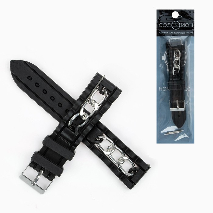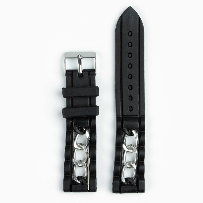 Ремешок для часов, 20 мм, силикон, l-20 см, черный
