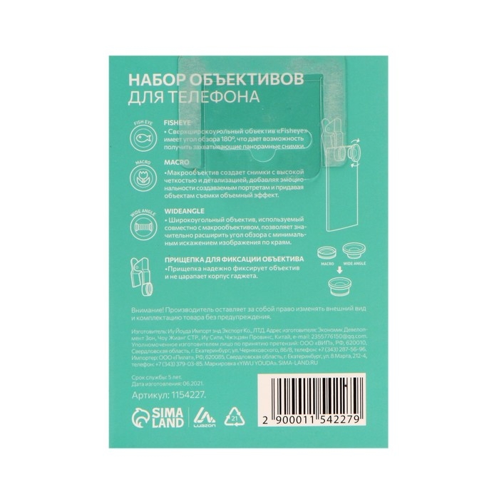 Набор линз Luazon для телефона: широкоугольная, макро и рыбий глаз 180 градусов