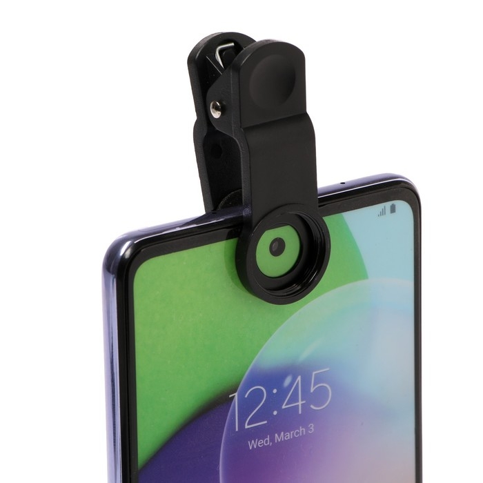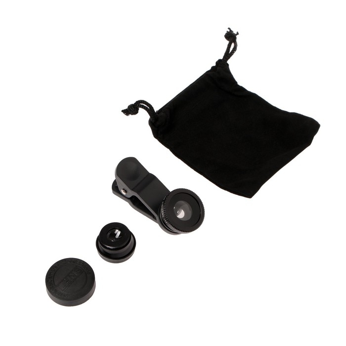 В комплект входят 3 насадки с пластмассовыми защитными крышками, прищепка, которая крепит линзу к гаджету, и мешочек для переноски. В зависимости от ваших требований наденьте на смартфон один из мини-объективов: линзу с широким обзором, для макросъёмки или «рыбий глаз».