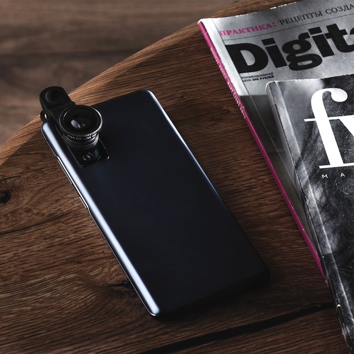 Широкоугольная линза охватывает больший угол, чем штатная камера. Макрообъектив снимает в масштабе 1:1 и выдаёт детализированные фотографии мелких предметов. А «рыбий глаз» фиксирует всё пространство вокруг себя и предоставляет 180-градусные проекции вместо привычных изображений.