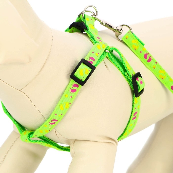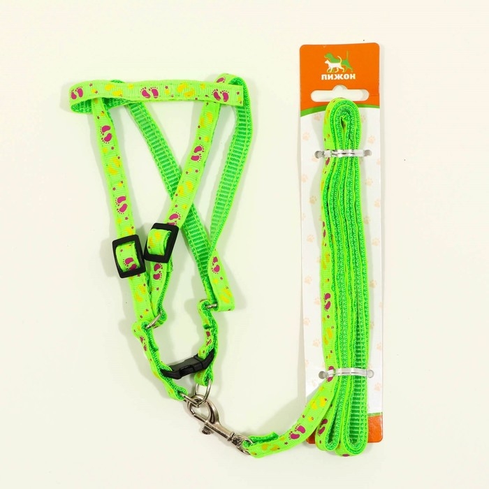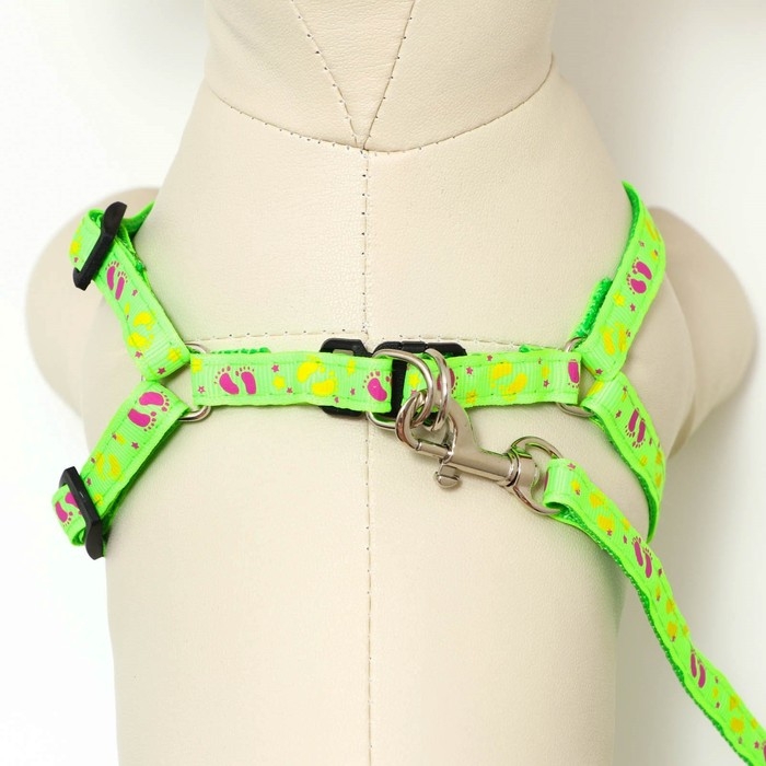 Комплект "Цветные следы", поводок 120 х 1 см, ОГ 23-35 см, зелёный