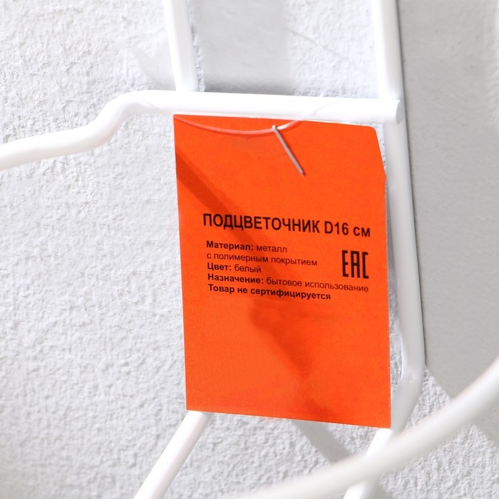 Подвес для кашпо, настенный, d = 16 см, белый, «Одиночка»