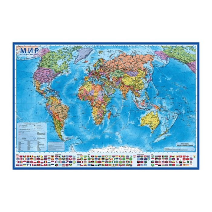 Карта мира политическая, 101 х 70 см, 1:32 М, ламинированная, в тубусе
