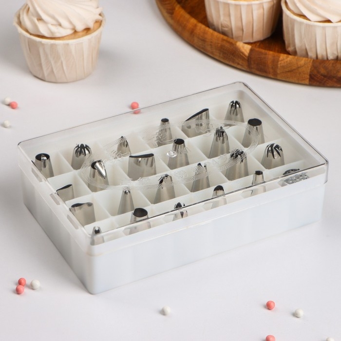 Набор насадок кондитерских, d=2 см, 24 шт, в кейсе, насадки МИКС