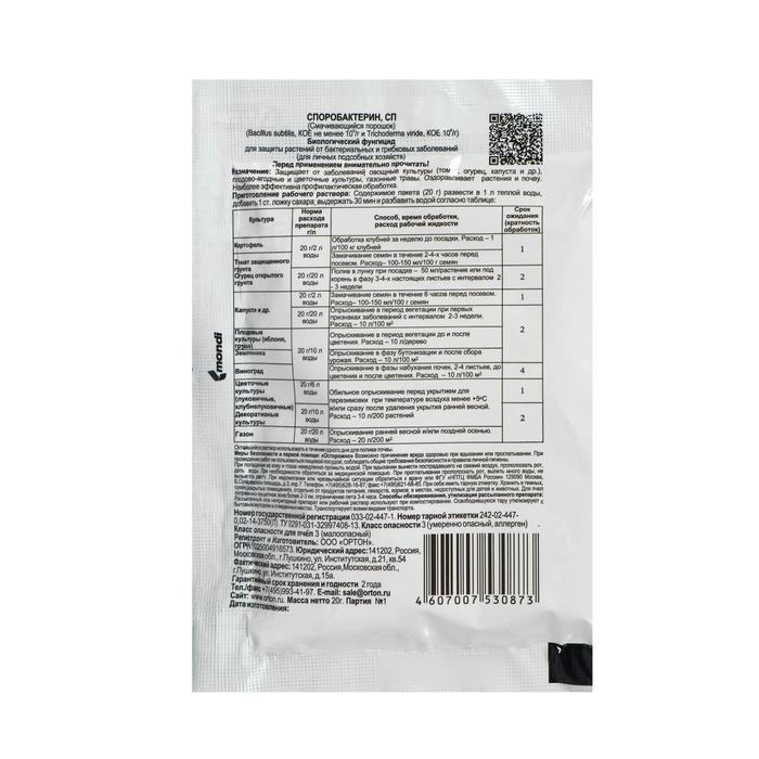 Биологическое средство от грибных и бактериальных болезней Споробактерин, 20 г