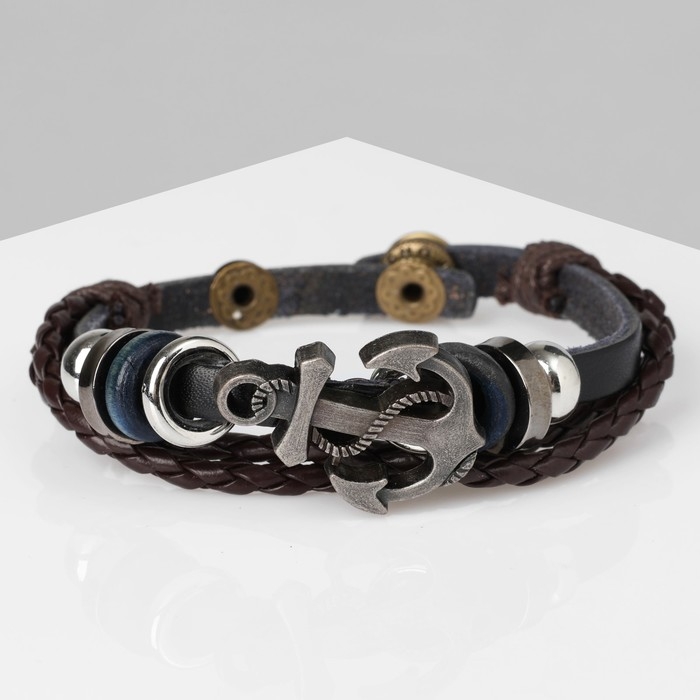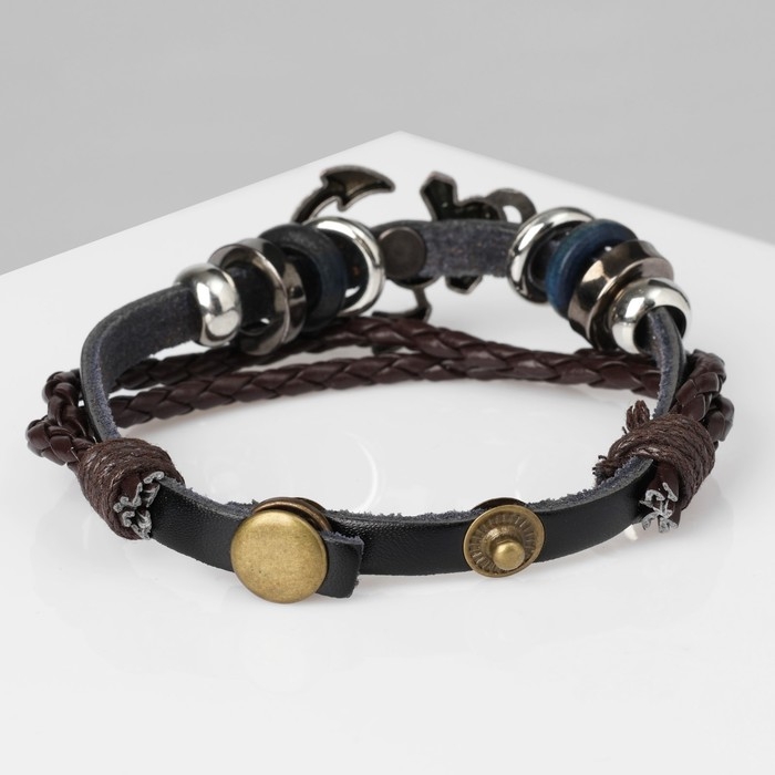 Браслет унисекс «Стиль» якорь, три нити, цвет чёрно-коричневый с серебром, 22 см