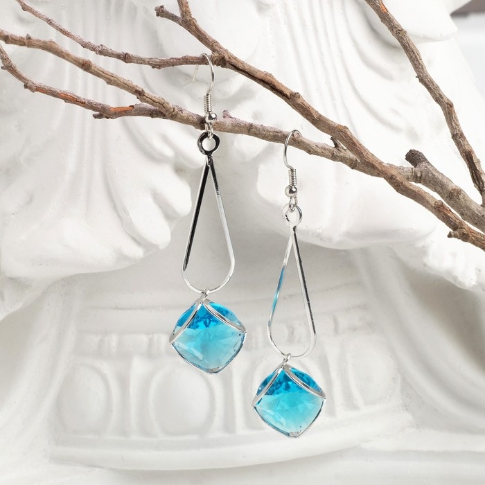 Серьги висячие со стразами «Капля с ромбом», цвет голубой в серебре, 7,2 см станут ярким дополнением вечернего наряда – длинного элегантного платья или однотонной блузки. Уберите волосы в высокий хвост или сделайте «шишечку», чтобы открыть линию плеч – украшение зрительно удлинит вашу шею, а черты лица сделает ещё изящнее и утончённее.