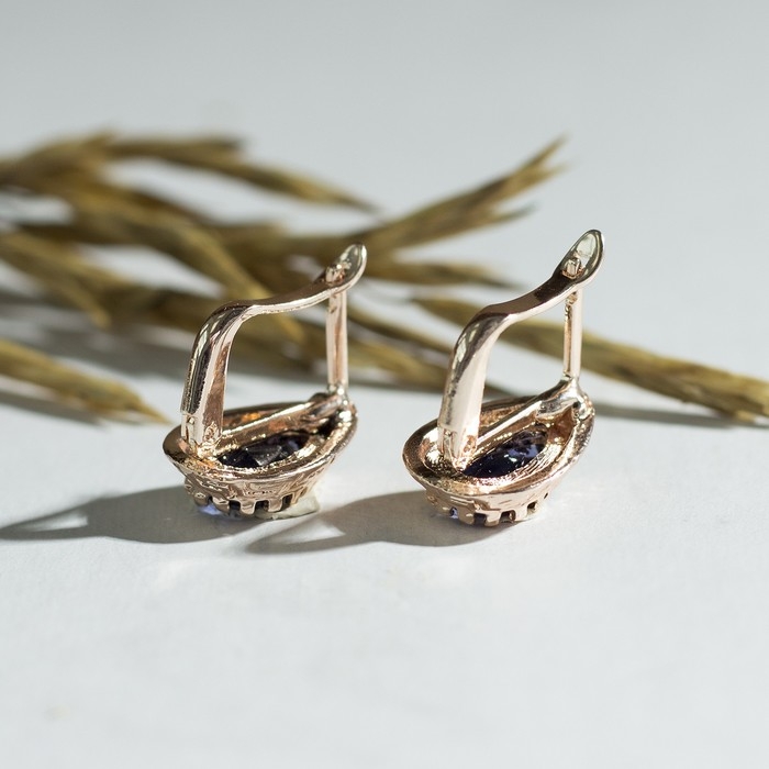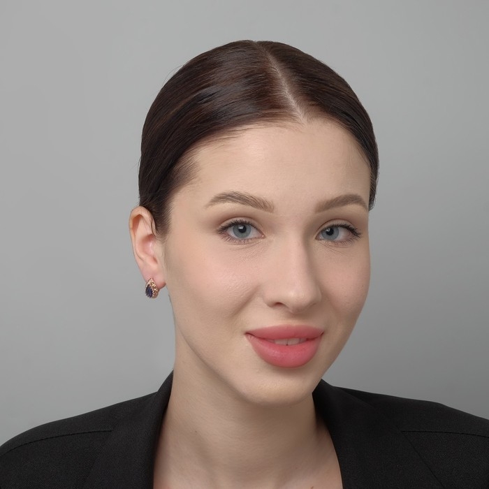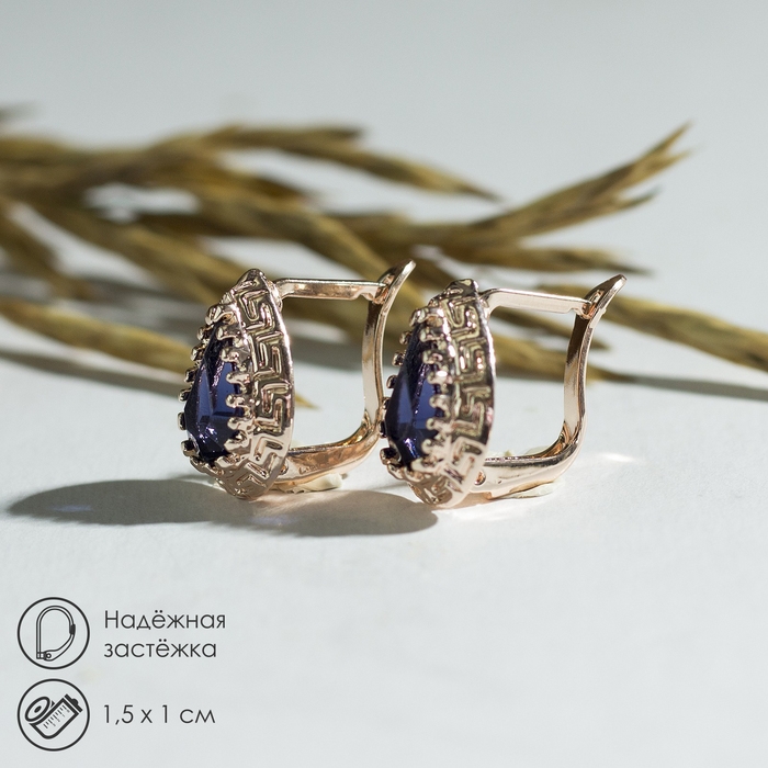Серьги со стразами «Эдель» капля, цвет тёмно-синий в золоте