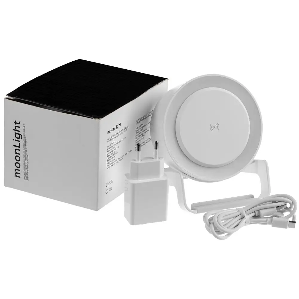 Лампа с колонкой и беспроводной зарядкой moonLight, белая