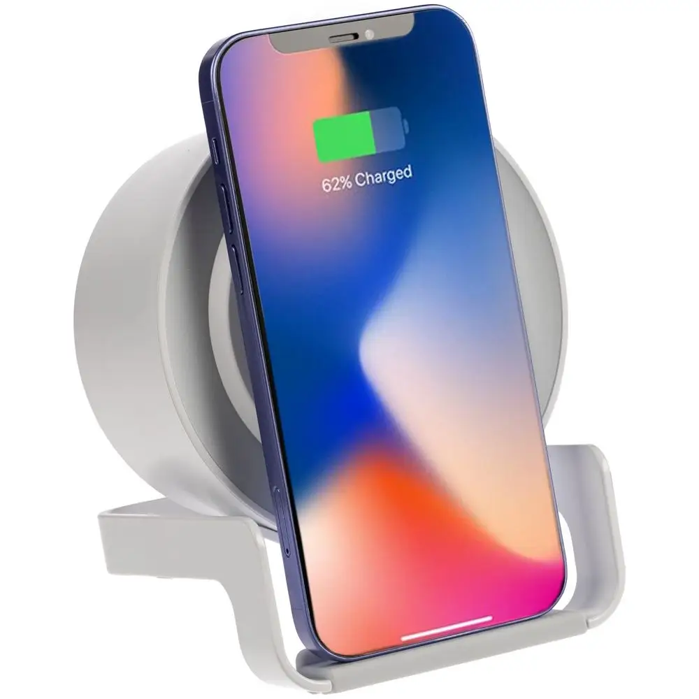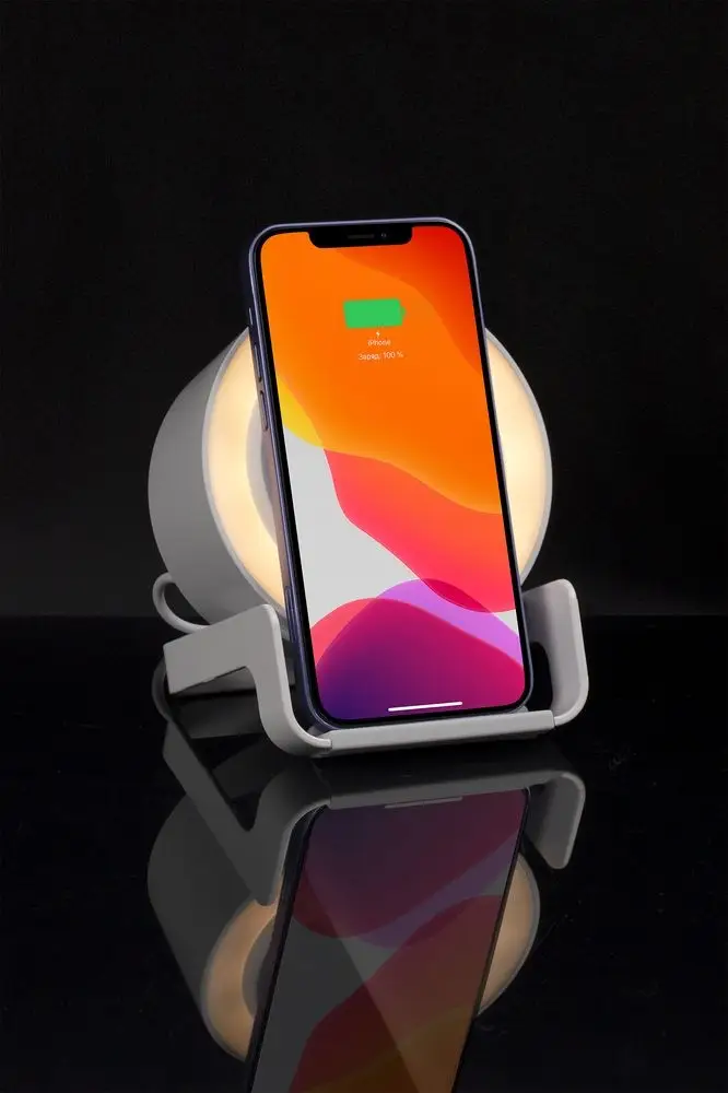 Гаджет совместим со всеми мобильными устройствами, поддерживающими технологию беспроводной зарядки Qi. Зарядка начинается автоматически при размещении смартфона на подставке.